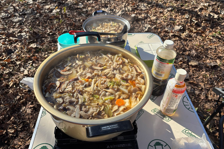 11時30分を過ぎると友子シェフによる絶品けんちん汁が完成したので、お楽しみのお昼休憩です。